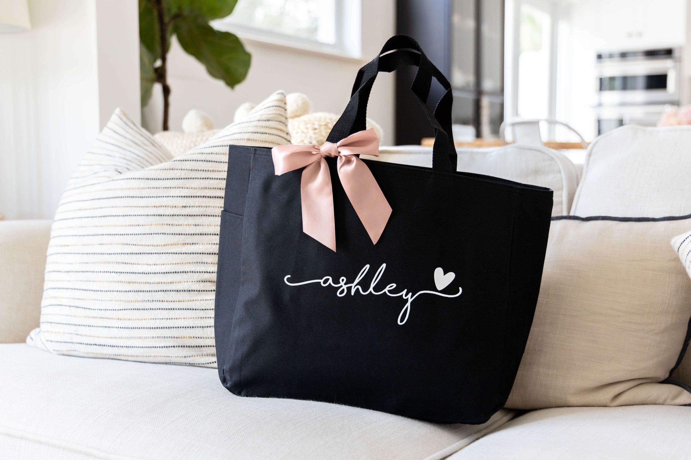 Treat your bridal party with a personalized bag for bridesmaid that’s cute, functional, and perfect for the big day! Featuring her name and title, this custom tote makes a fun and practical touch for wedding day essentials. Whether you're packing robes, flats, or snacks, it’s a must-have for custom bridesmaid gifts that they'll actually use again and again!
