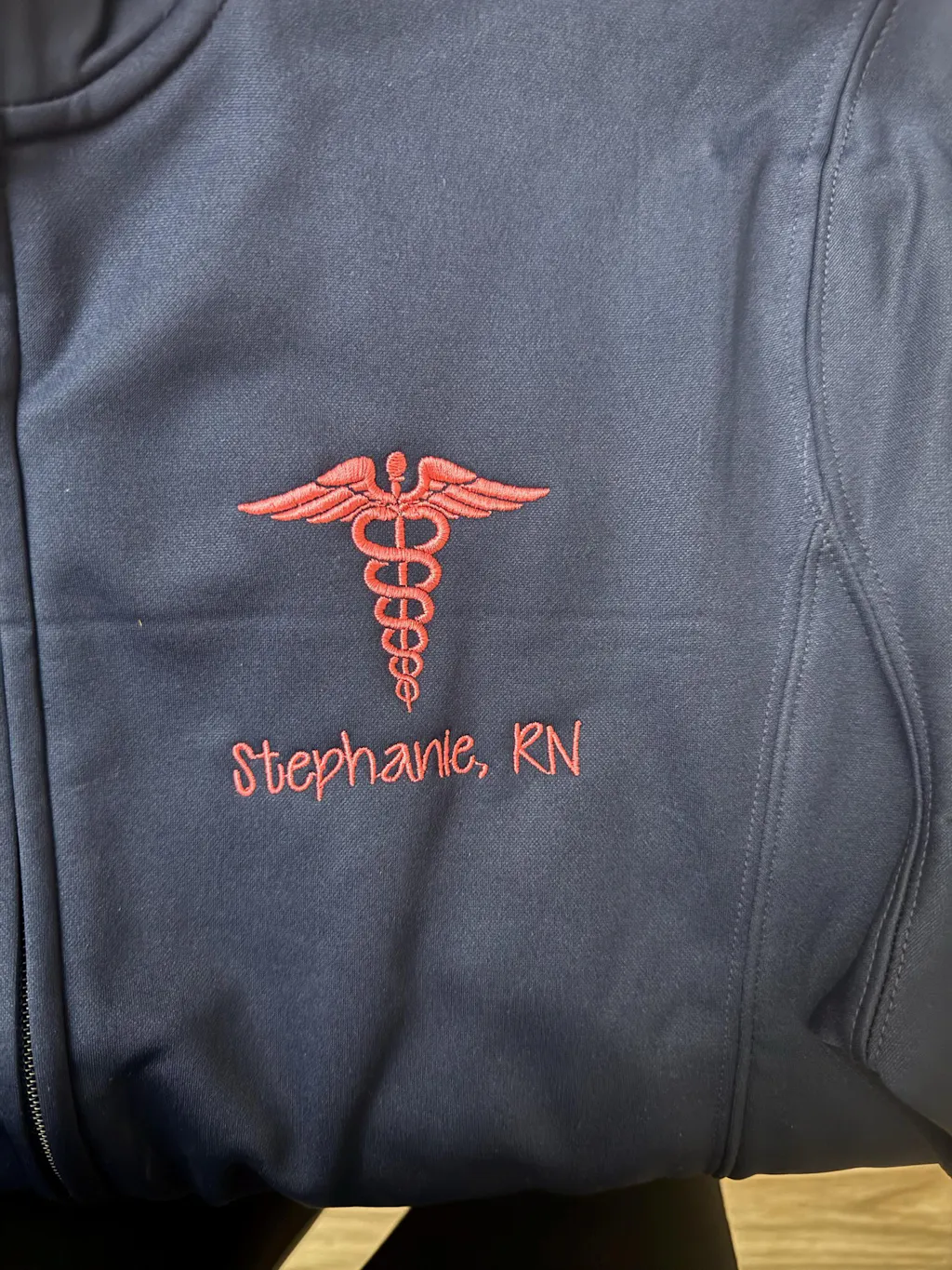 This personalized nurse jacket is perfect for staying stylish on and off shift! Made from soft fleece with a sleek fit, this zip-up features a custom name and medical emblem embroidered on the chest. Whether you're an RN, BSN, or NP, it’s made just for you! These nurses fleece jackets make amazing personalized nurse gifts for grads, coworkers, or yourself. Customize yours today!