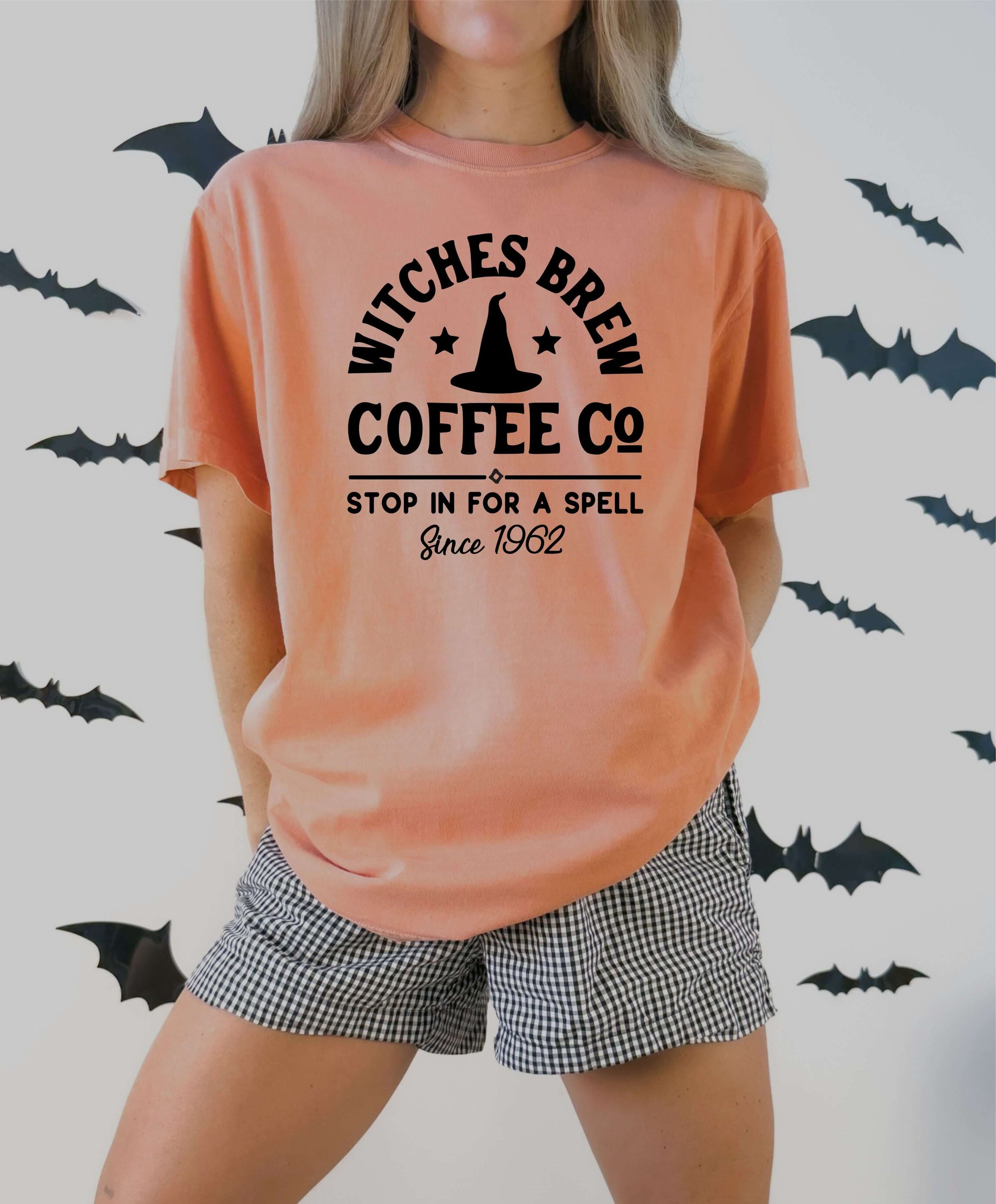 Start your morning with a spell in this Witches Brew Coffee Co T-shirt! This Halloween coffee graphic tee is perfect for PSL season, spooky girl coffee runs, or witchy fall vibes. Made from soft cotton and designed with a fun witch hat and gothic lettering, it’s your go-to fall aesthetic tee. Great for layering with flannel or denim and sipping your favorite fall drink. A must-have witchcore outfit idea for Halloween parties, pumpkin patch pics, or just chilling with your broom and brew.